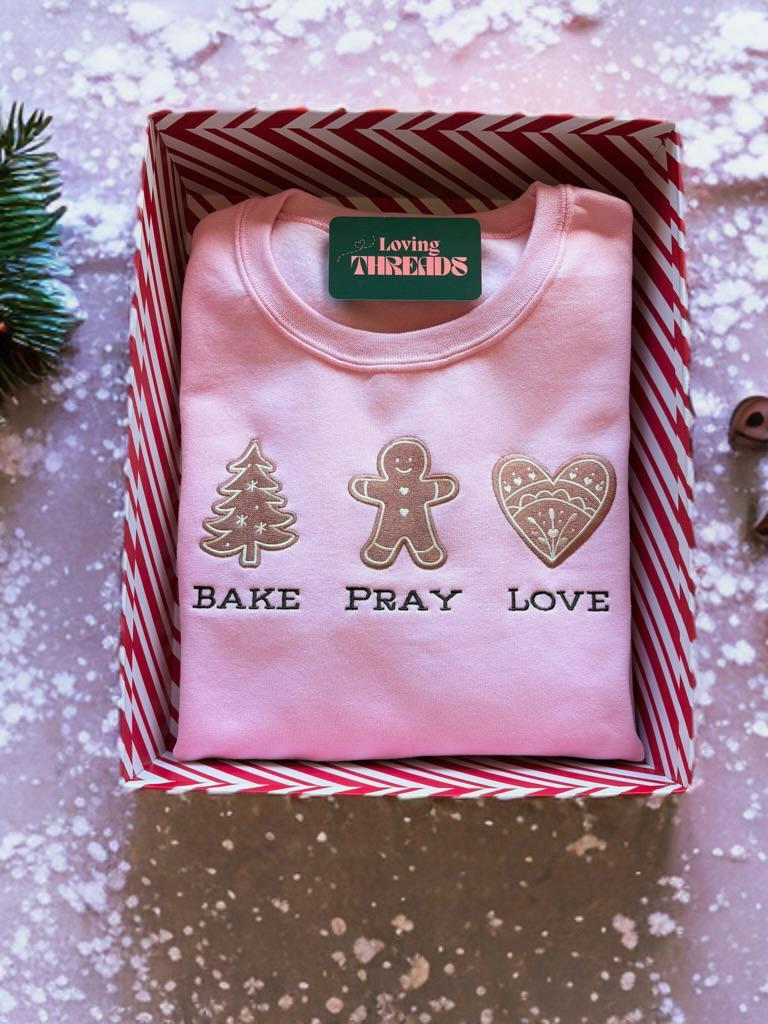 Bake • Pray • Love Gingerbread Cookies Embroidered Sweatshirt
