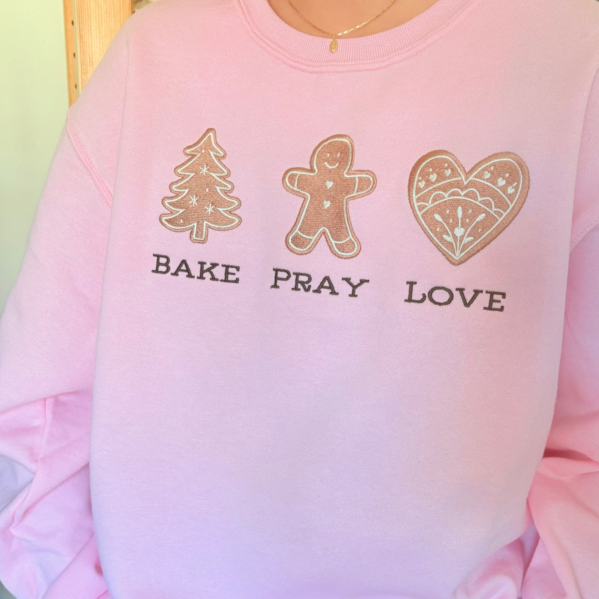 Bake • Pray • Love Gingerbread Cookies Embroidered Sweatshirt